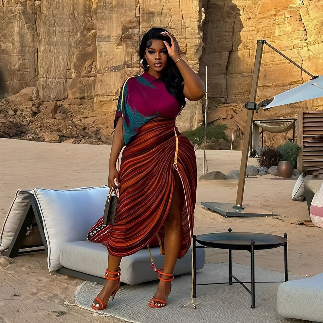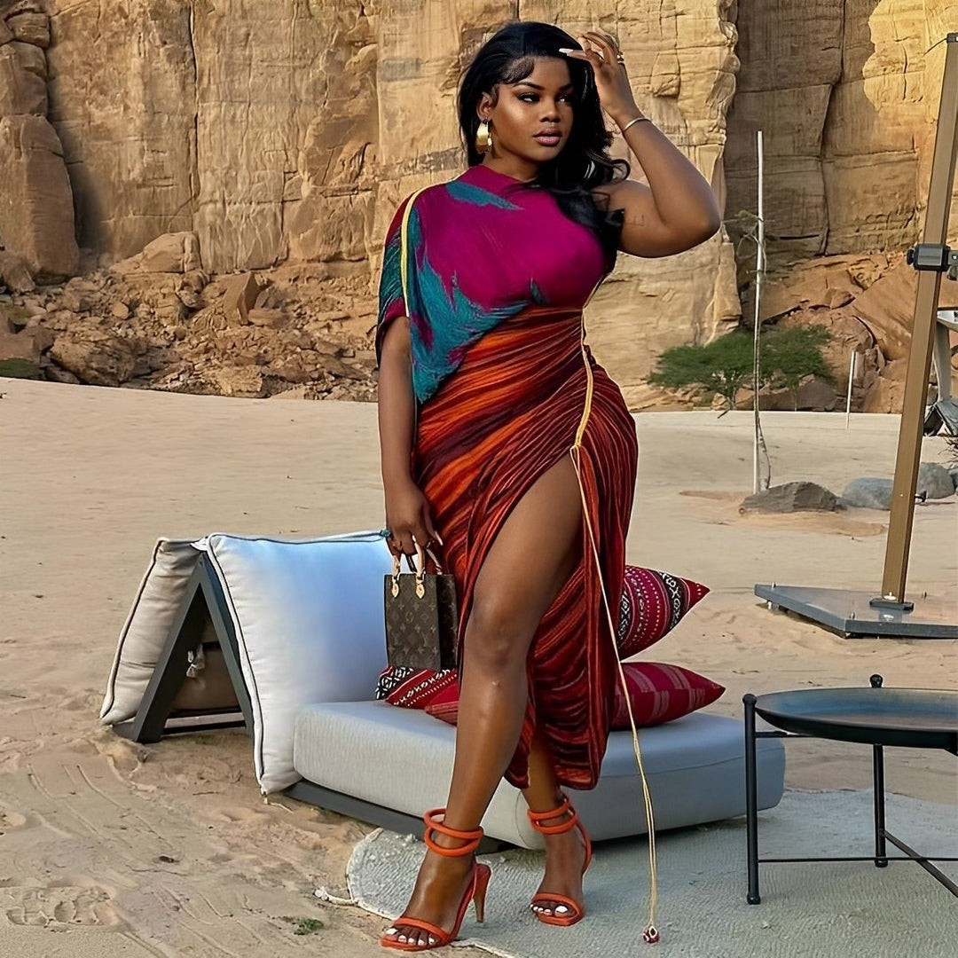 Printed Multicolor Pleated Irregular Dress