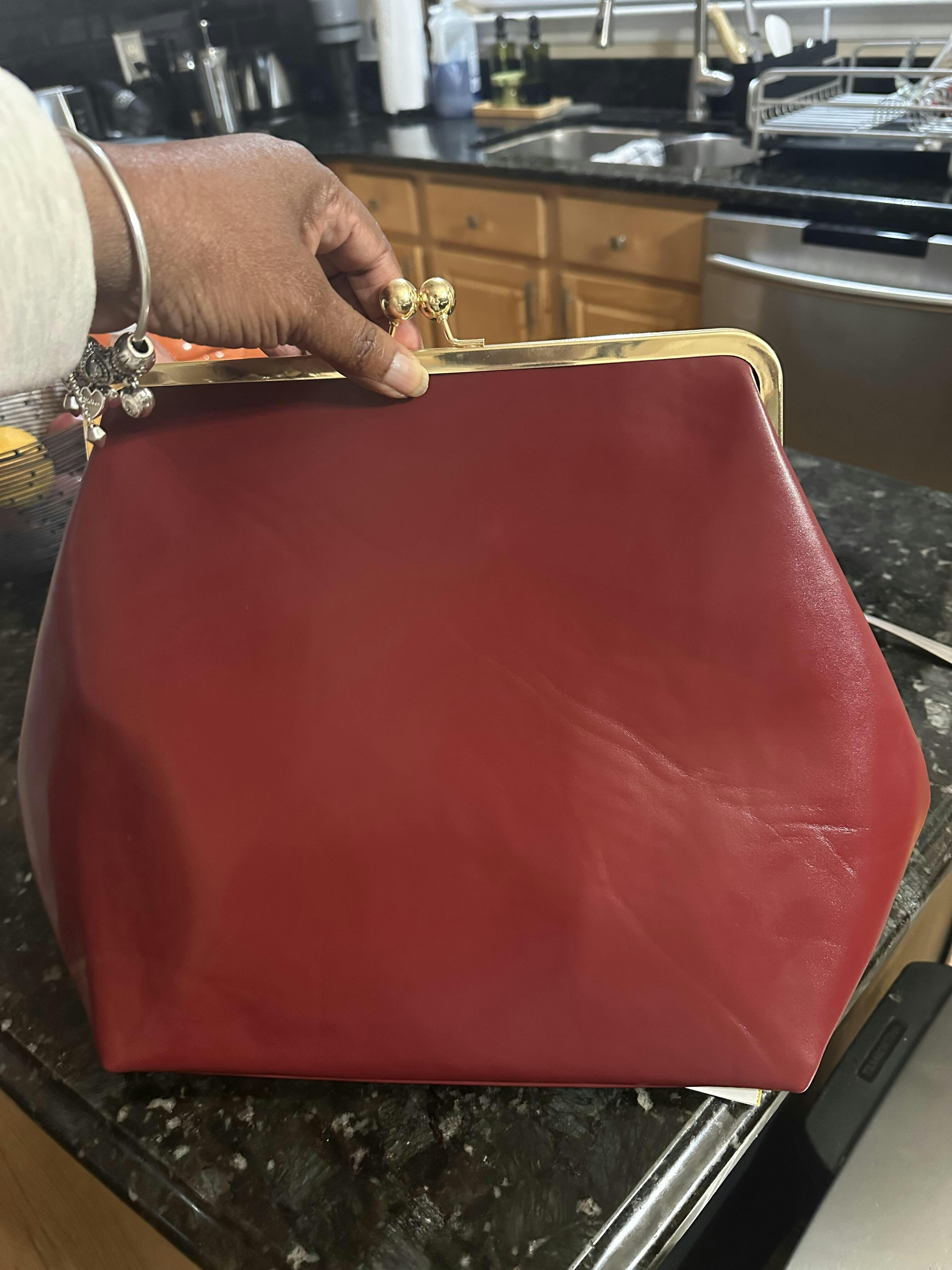 The purse is a great replica of the Coach Kiss Lock style at a much more affordable price. It looks stylish and closely resembles the original. However, the downside is that it’s not made of leather, and it arrived folded, which left a noticeable crease on the material.